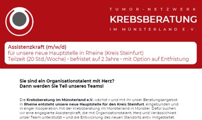 Für Kinder im Alter von 6 bis 13 Jahren, die mit der Krebserkrankung eines Angehörigen konfrontiert sind, bietet Christina Strotmann (Dipl.-Psychologin, Psychoonkologin, Mitarbeiterin der Krebsberatungsstelle) ein Treffen an. |